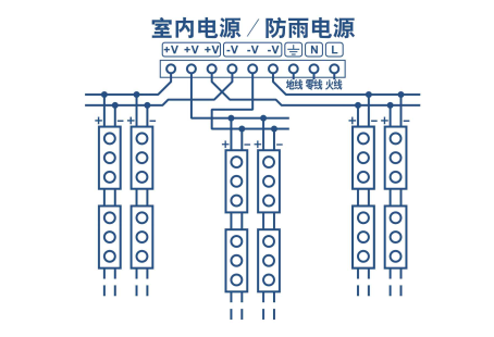 3、使用前先分清電源輸入端(INPUT) 、輸出端(OUTPUT)。 室內(nèi)電源和防雨電源輸入端L接市電輸入的火線,N接市電輸入的零線;防水電源輸入線棕色線是火線,藍(lán)色線是零線,黃綠線是地線。地線要可靠接地,以確保安全,不可誤將輸入的市電接到地線上,否則會(huì)造成電源漏電及燒毀電源。